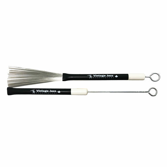 HeadHunters Jazz Brush Sticks: Use a standard 7/16” diameter tube with a comfortable rubber grip. The O/D diameter is just over 5/8 of an inch. The wire gauge is a standard .013 inch. The Jazz brush comes with an adjustable pull rod so the wire fan can be set to 3 fan settings. The wire can be retracted into the internal tube with the pull rod fully extended back.