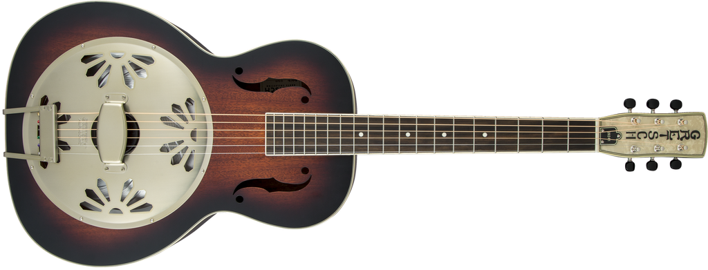 Gretsch 2718015503 G9241 Alligator Round Neck 2 Color Burst no Case or Bag: NECK MATERIAL Mahogany NECK FINISH Vintage Semi-Gloss NECK SHAPE Medium "V" SCALE LENGTH 25" (635 mm) FINGERBOARD RADIUS 15.75" (400 mm) FINGERBOARD MATERIAL Padauk NUMBER OF FRETS 20 (12 to Body) FRET SIZE Medium Jumbo NUT MATERIAL Bone NUT WIDTH 1.75" (44.45 mm) POSITION INLAYS White Dot BUILD Folk & Bluegrass CUTAWAY Non Cutaway BODY FINISH Vintage Semi-Gloss BODY SHAPE Resonator BODY MATERIAL Laminated Mahogany