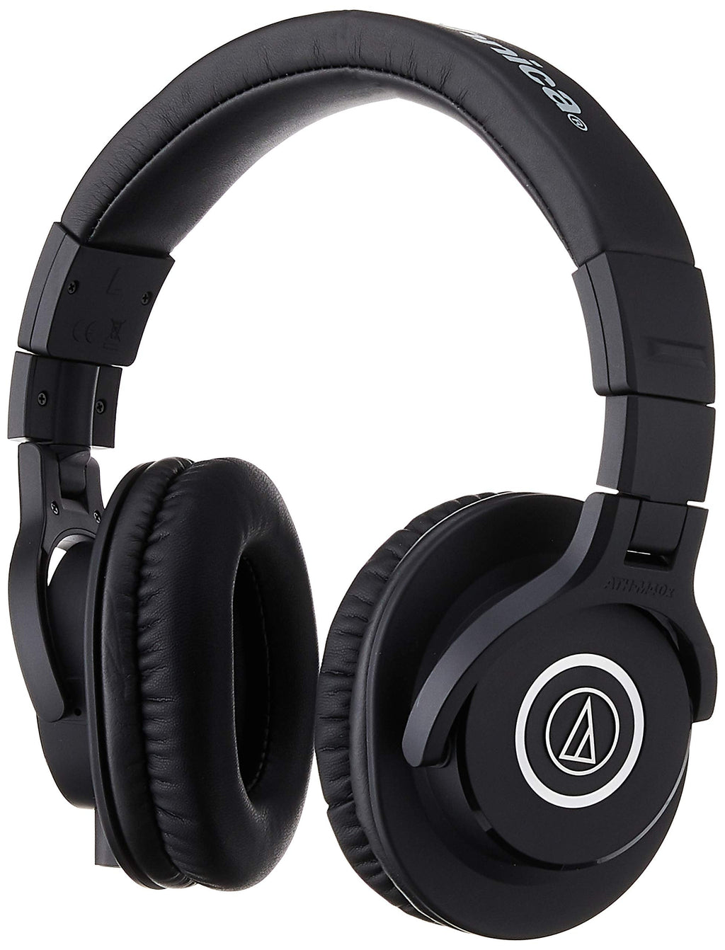 Audio-Technica ATH-M40x Closed-Back Monitor Studio Headphones: For Studio Tracking/Mixing and DJing 40mm Neodymium Dynamic Drivers 15 Hz to 24 kHz Frequency Response Tuned for Flat, Accurate Response Over-Ear, Sound-Isolating Design 90° Swiveling Earcups, Foldable Design Two Detachable Single-Sided Cables Pro-Grade Build Boosts Comfort/Strength 3.5mm TRS Plug and 1/4" Screw-On Adapter Merging acclaimed features of the M-Series headphones with a foldable, travel-friendly design, and one-ear monitoring capability, the black Audio-Technica ATH-M40x monitor headphones offer pro-grade build quality and audio performance for studio-based production, location recording, DJing, and daily listening. Outfitted with 40mm dynamic drivers and an over-ear, closed-back design, the ATH-M40x headphones deliver a flat, accurate response and wide bandwidth (15 Hz to 24 kHz) while isolating you from outside sounds.