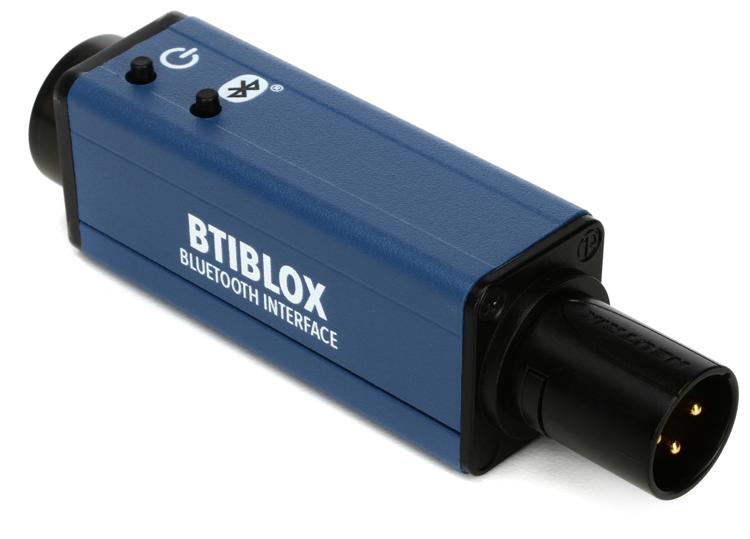 Rapco BTIBLOX Bluetooth Receiver Interface: Type: Active Bluetooth Receiver Channels: 1 Inputs: Bluetooth v4.2 Outputs: 1 x XLR USB: 1 x Micro-B (charging) Power Source: 48V phantom power / Rechargeable Battery Manufacturer Part Number: BTIBLOX Bluetooth interface pairs with your Bluetooth-equipped device and streams it directly to a mixer input Works with audio players, smartphones, computers, tablets, and more 75' operating range gives you plenty of room to work with LED indicator gives you at-a-glance confirmation of its operation status Functions on phantom power or its internal rechargeable battery Rechargeable battery offers 6-8 hours of battery life Built to Bluetooth 4.2 specifications FCC and RoHS compliant