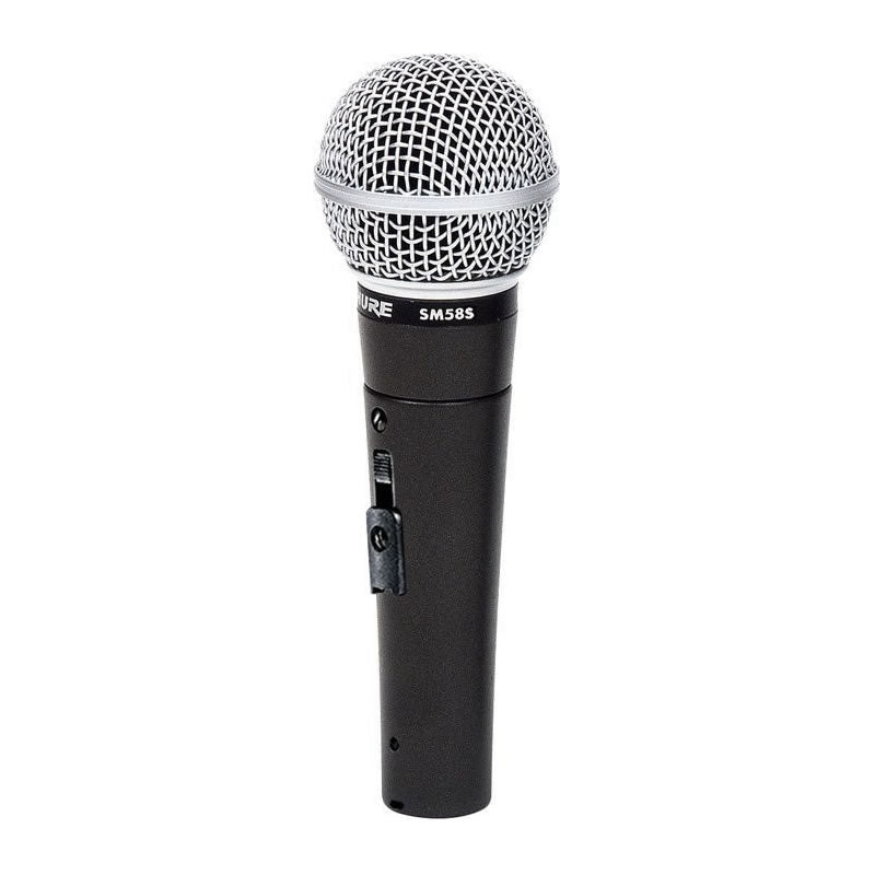 Shure SM58S On-Off SW Cardioid Dynamic Microphone Black Includes Soft Gig Bag: Legendary for its uncanny ability to withstand abuse that would destroy any other mic. World-renowned for its distinctive upper-midrange presence peak that ensures an intelligible, lively sound. Perfectly fits the hand, balanced for total comfort during long live music gigs. Frequency response is a smooth, vocal-tailored 50Hz-15kHz, and the price is a bargain considering its life expectancy. Includes an on/off switch for convenience onstage. Shure SM58S Mic with Switch Features: The world standard for stage vocals Distinctive upper-midrange presence Perfectly balanced and comfortable in the hand Smooth, vocal-tailored frequency response: 50Hz-15kHz Includes an on/off switch for convenience onstage