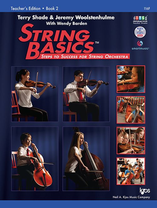 Kjos 116F String Basics Book 2 Teacher's Music Book: String Basics™ Book 1 has been praised for the smooth transition from pizzicato to arco, the solid reinforcement of skills learned, the detailed attention to rhythm, and the fantastic selection of songs. Continuing with a strong and sound pedagogy featuring step-by-step sequences of instruction, Book 2 begins with a solid review in order for students to get a firm footing so that new concepts fall right into place. New note values, rhythm patterns, key signatures, finger patterns, and dynamics are introduced and reinforced with fantastic technical exercises, cultural music, and classical themes.